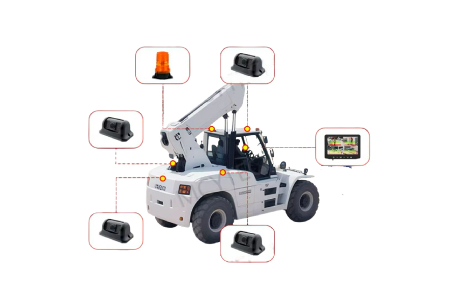 Sistema 360° con 4 cámaras IA que detecta peatones/objetos y emite alertas sonoras/visuales; pantalla 7″. Sistema de cámaras 360° con IA, alertas sonoras/visuales y pantalla 7 pulgadas